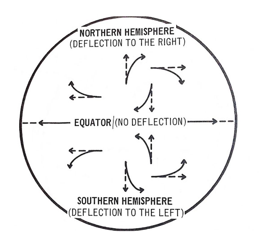 Egyébként ez a Coriolis-erő által okozott effektus tényleg létezik, csak irtózatosan kicsi, ha az Egyenlítőtől néhány méterre vagyunk. A Coriolis-erő ugyanis: