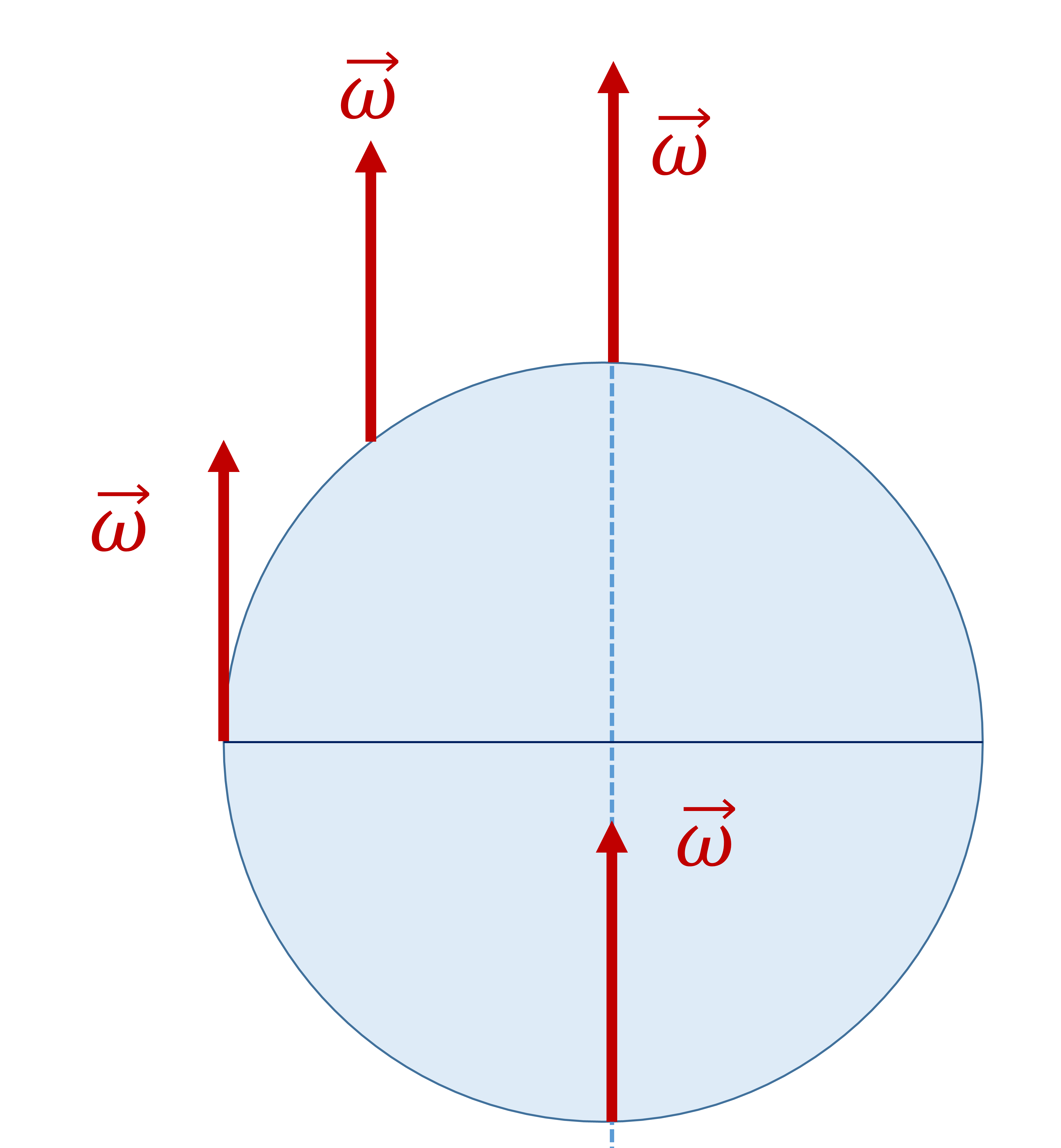 A Föld \(\vec{\omega}\) szögsebességvektora mindenhol a Föld forgástengelyével párhuzamos, és észak felé mutat: