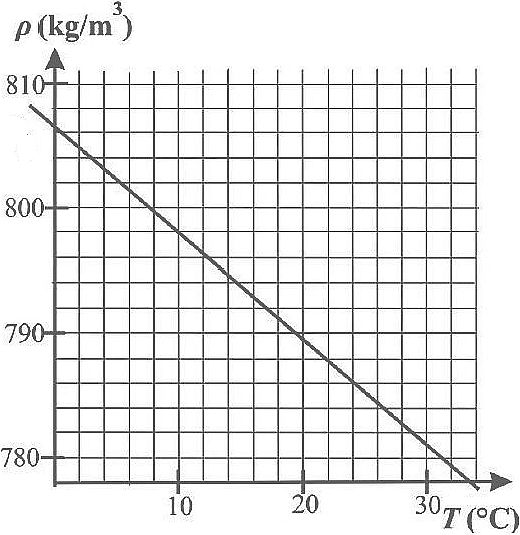Mivel lebegés esetén a gömb és a folyadék sűrűsége egyenlő (1 pont), a grafikonról leolvasható, hogy a gömb sűrűsége nagyjából $790\ \mathrm{\displaystyle \frac{kg}{\ m^3}}$ (1 pont).