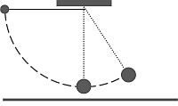 Tarzan egy $10\ \mathrm{m}$ magasan lévő faágon ül. Észreveszi, hogy kedvesét egy oroszlán fenyegeti. Megfeszít egy $10\ \mathrm{m\small é\normalsize ter}$ hosszú liánt az ábrának megfelelően, amely épp a kedvese felett rögzül. Tarzan a liánt fogva, kezdősebesség nélkül elindul a fáról. Körívének legalsó pontján magához öleli kedvesét, majd együtt fellendülnek egy közelben álló fa ágára. Tarzan $80\ \mathrm{kg}$, kedvese $60\ \mathrm{kg}$ tömegű.
