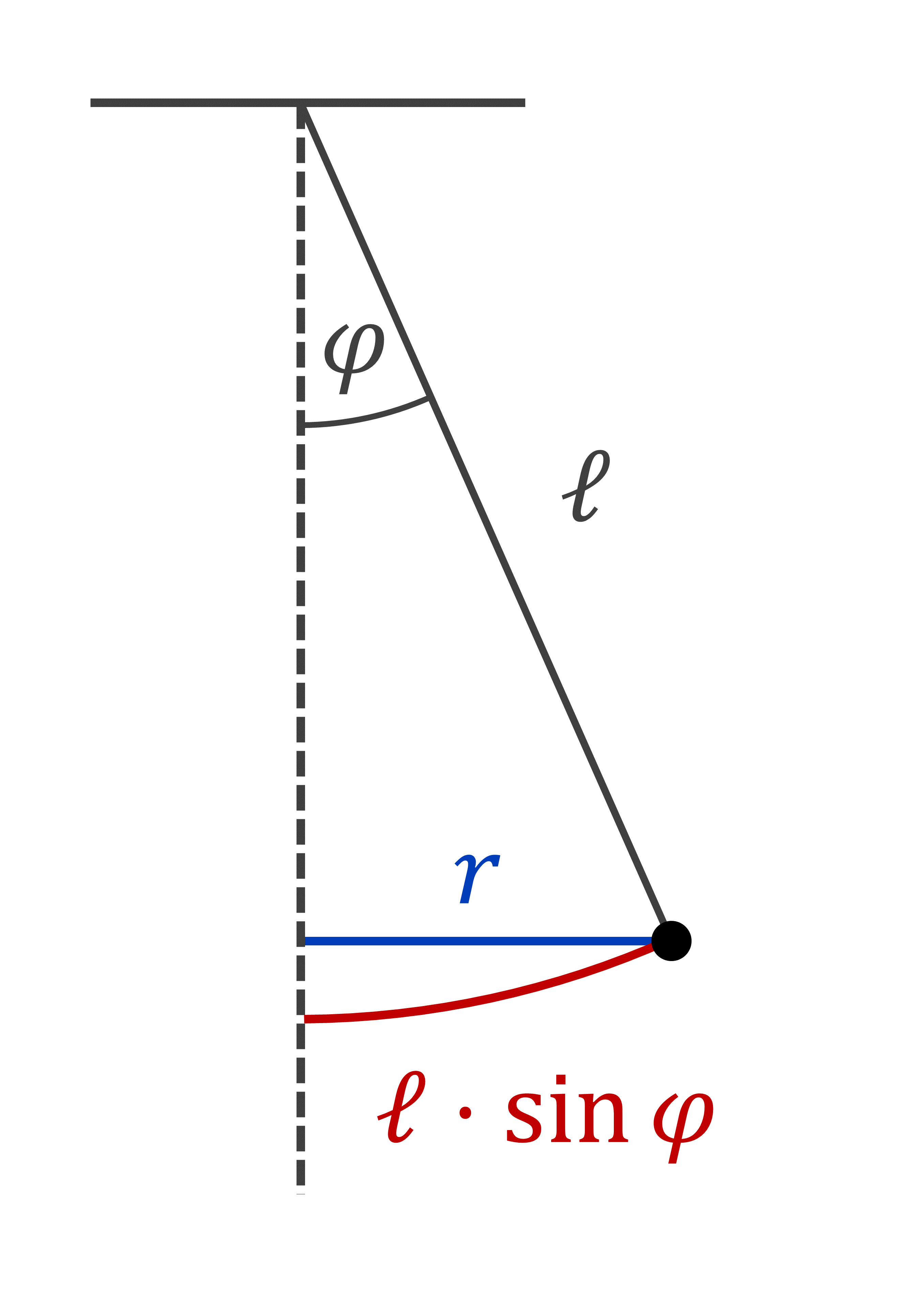 \[r\approx \ell \cdot \sin{\varphi}\approx \ell \cdot \varphi\]