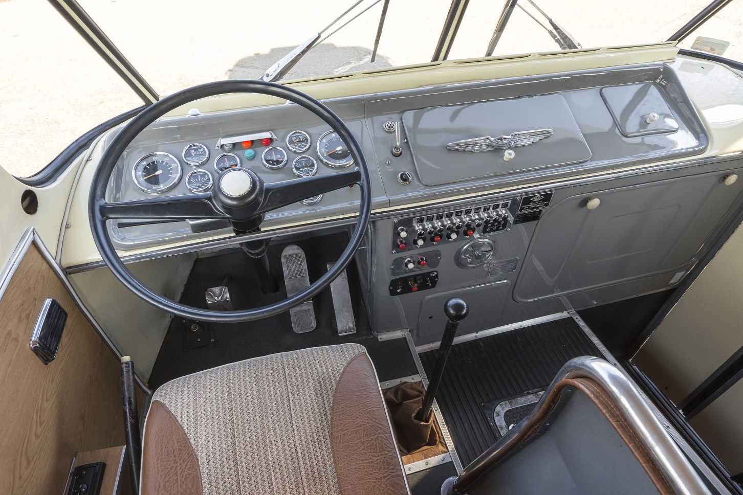 Régen a buszok kormánykereke igen nagy volt, ahogy ez az alábbi (1952-1973 gyártott) Ikarus 66 ("faros" becenevű) modellben látható: