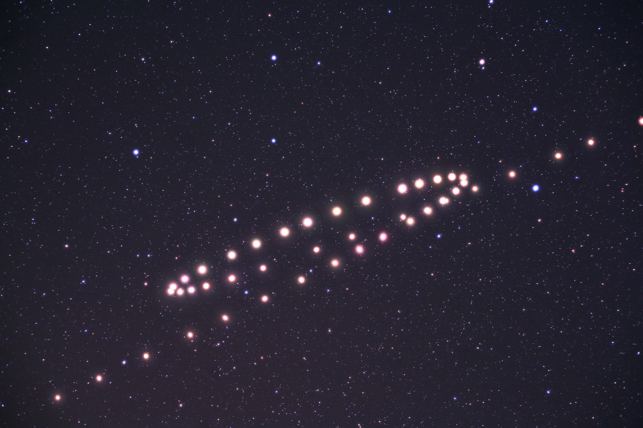 Hasonlót megfigyelhetünk a többi bolygónál is. Az alábbi képen a Jupiter (felül, nagyobb pöttyükkel) és a Szaturnusz (nem sokkal alatta, kisebb pöttyökkel) hurokszerű látszólagos mozgása látható: